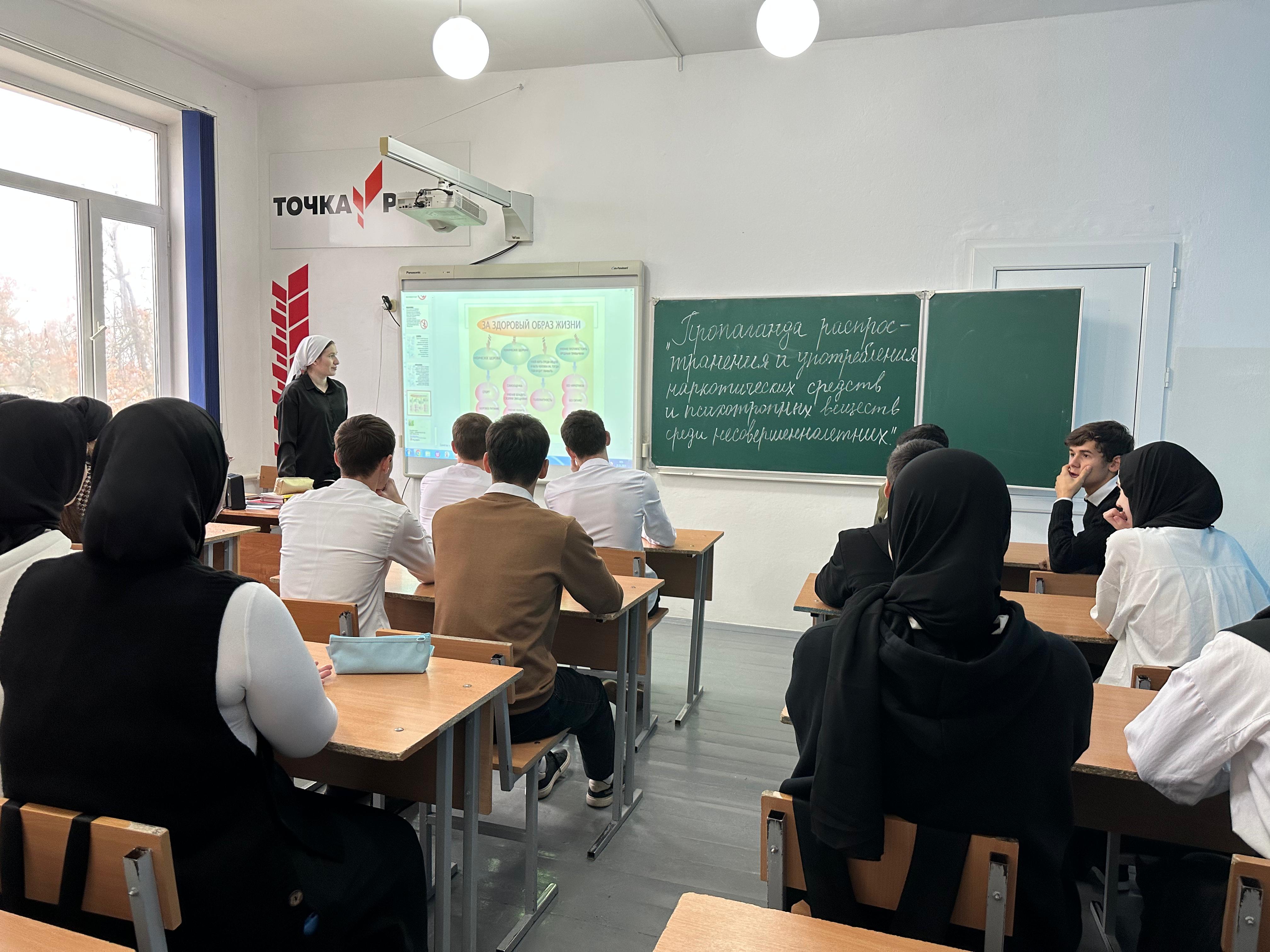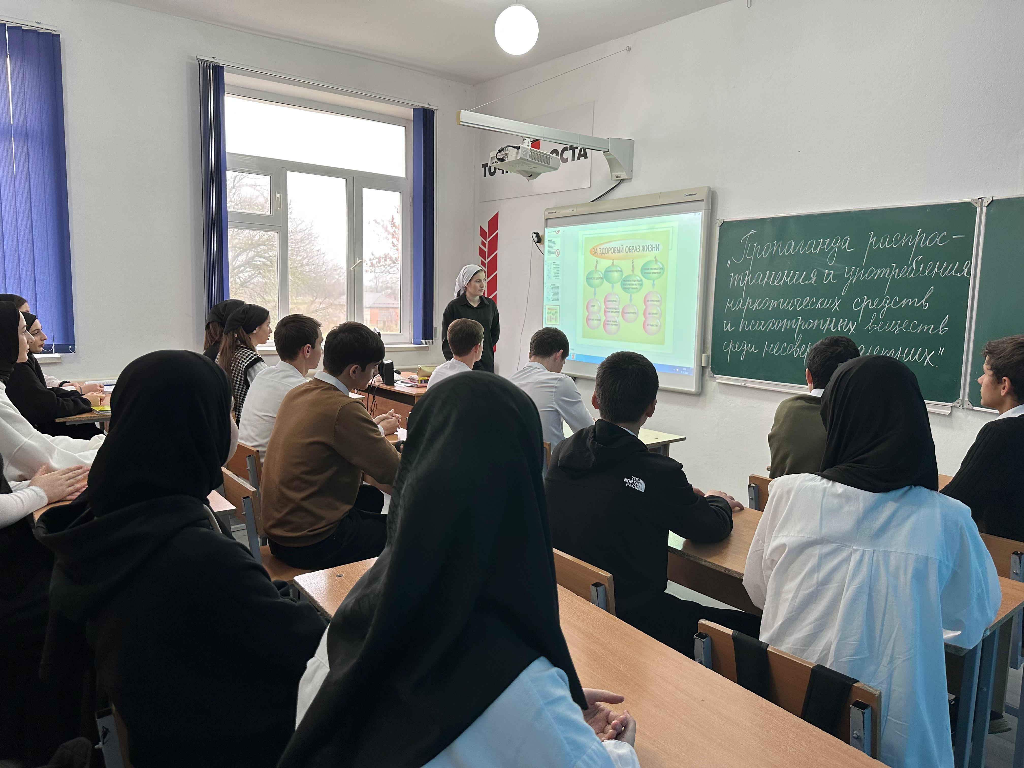21.11.2023Отделом в Шалинском районе УФСБ России по Чеченской Республике совместно с МУ «Отдел образования Шалинского муниципального района Чеченской Республики» проведено профилактическое мероприятие в МБОУ "СОШ с. Белгатой Шалинского муниципального района" на тему: «Ответственность за пропаганду распространения и употребления наркотических средств и психотропных веществ среди несовершеннолетних».