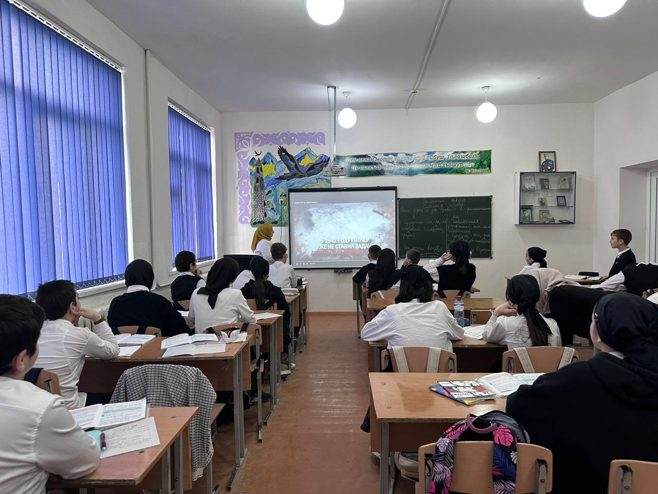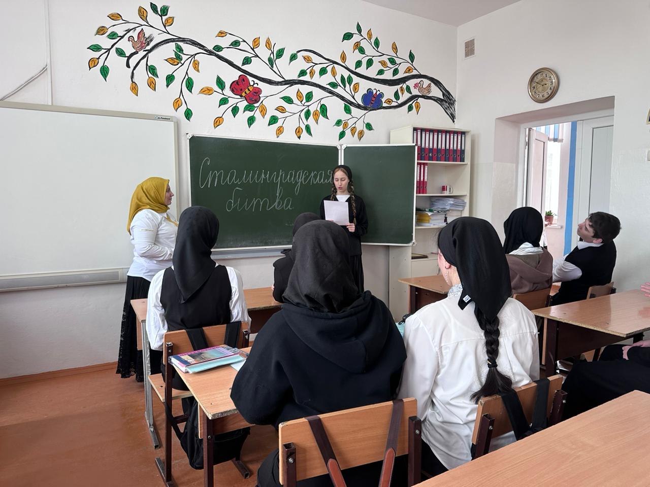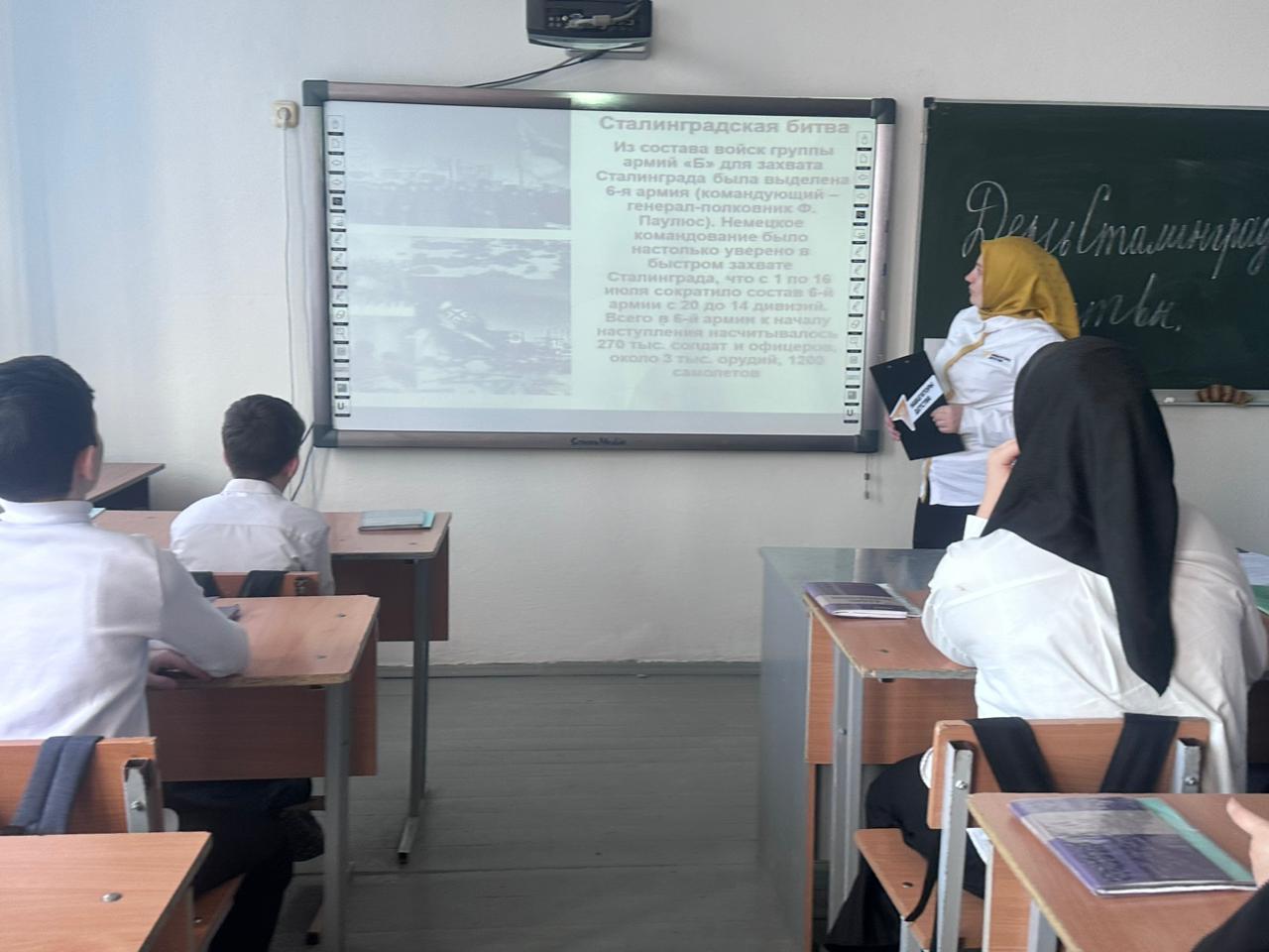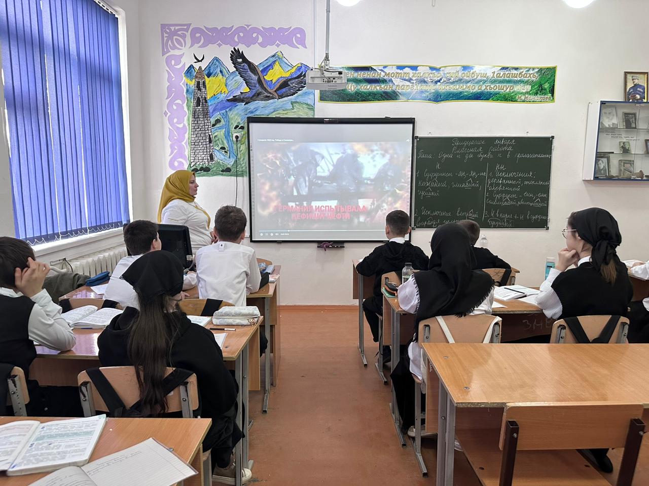 В МБОУ «СОШ с.Белгатой» советник директора по воспитанию Тимирова Е.X. провела киноуроки, беседы, виртуальная экскурсия « Дорогами Победы». учащиеся смотрели ролики, слушали доклады учеников.