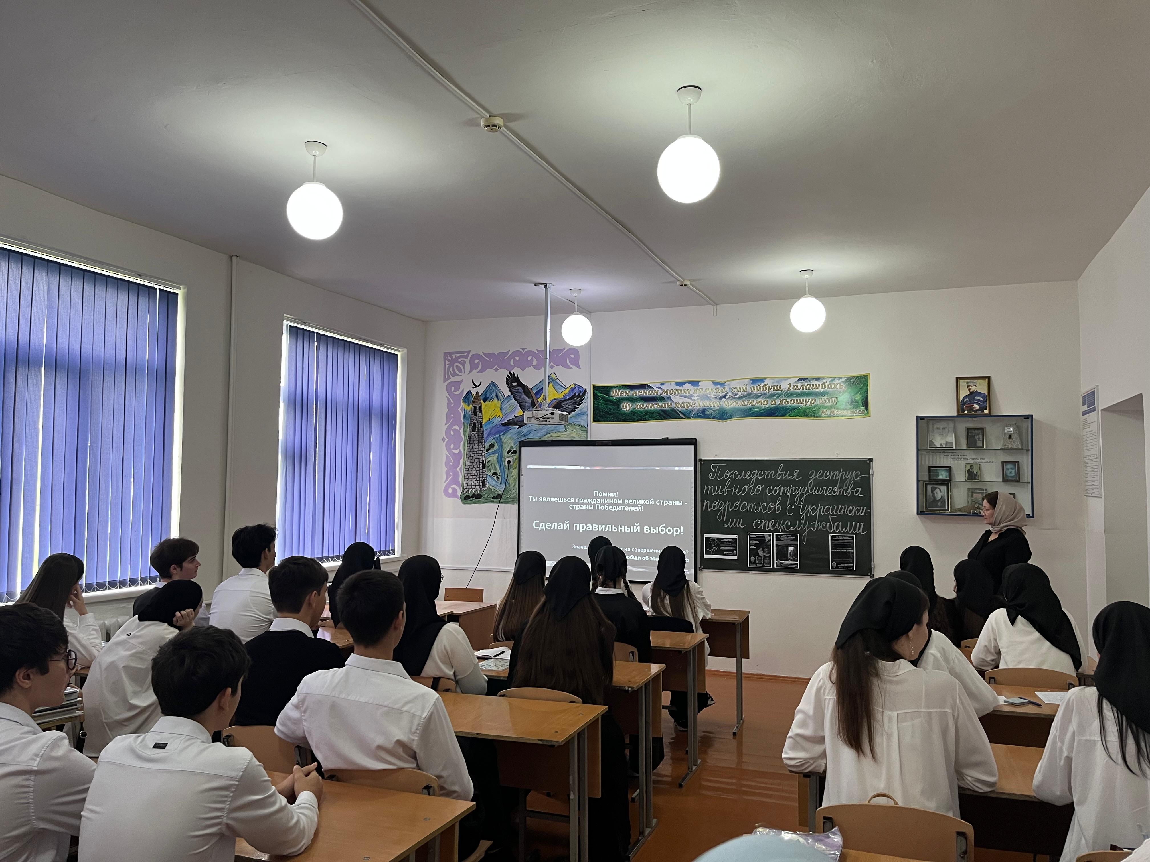 В МБОУ «СОШ с.Белгатой» проведено мероприятие, организованное сотрудниками ФСБ отдела Шалинского района, на тему: «Последствия деструктивного сотрудничества подростков с украинскими спецслужбами.»